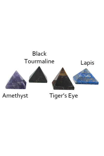Vintage lace is used to imprint a delicate texture on the cuff & ring. Choose from Amethyst (pictured in product shot), Black Tourmaline, Tiger's eye (pictured on model) or Lapis pyramid. Each pyramid is unique and varies slightly in size & color.
