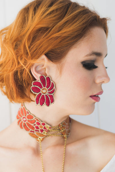 Flower Child Earrings - Berry/Orange/Turquoise