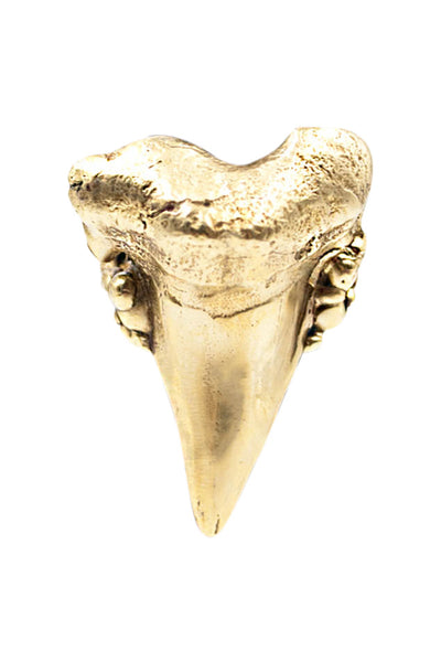 Hand carved & cast brass shark tooth ring w/ braided band.
